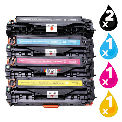 5 x Compatible HP 304A Toner Cartridge CC530A - CC533A (2BK 1C 1M 1Y)