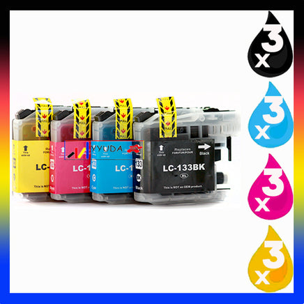 12 x Compatible Brother LC131 / LC133 Ink Cartridge LC-131 / LC-133 [3BK 3C 3M 3Y]