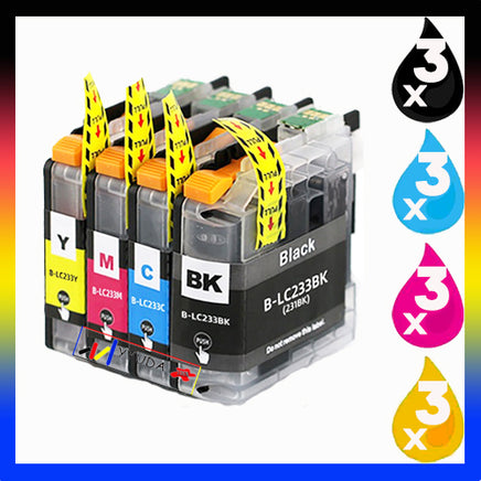 12 x Compatible Brother LC233 Ink Cartridge LC-233 (3BK 3C 3M 3Y)