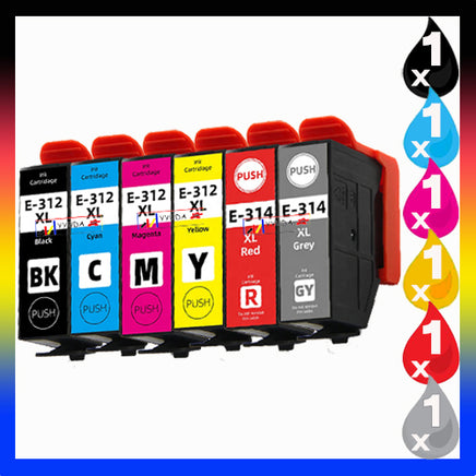 6 x Epson 312XL 314XL Compatible High Yield Ink Cartridge (1BK 1C 1M 1Y 1GY 1R)