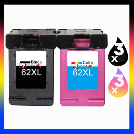 6 x Compatible HP 62XL High Yield Inkjet Cartridges C2P05AA + C2P07AA (3BK 3CL)