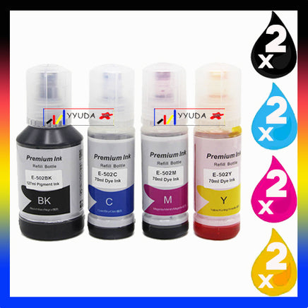 8 x Compatible Epson T502 / E502 EcoTank Ink Bottle C13T03K192 - C13T03K492 (2BK 2C 2M 2Y)